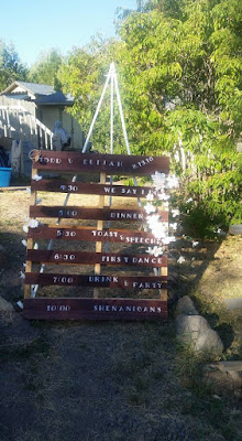 Yesterday's celebration was a bit different. But things are done different today. Some folks get married on a beach. Some in the Elvis Chapel in Las Vegas. Some get married under water. Some skydiving from a plane (that is NOT a ceremony I'll be attending). Todd & Elijah chose Crystalwood Lodge. Rustic little out of the was place, maybe 40 miles from town. The drive itself is gorgeous, some tall Oregon timber, and eventually we wound up on a dust/gravel road to get to our destination. It may have been in the 90's when we left home, but the change in altitude, shade and breeze made for a pleasant seating area.